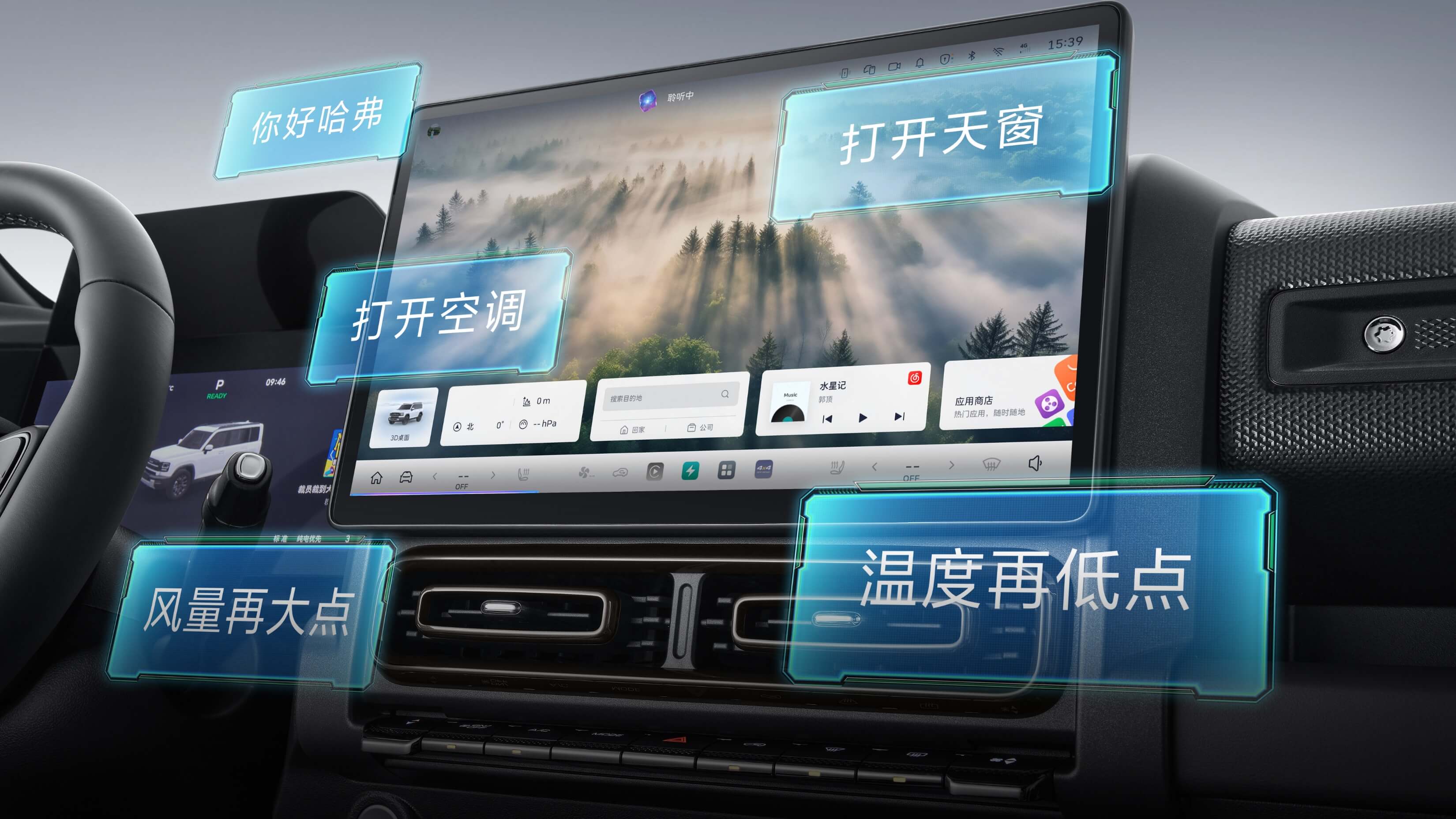 壁纸桌面、3D桌面、地图桌面随心切换,支持多种自定义功能,一键打造个性座舱