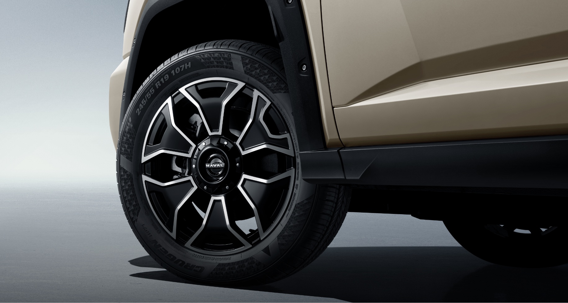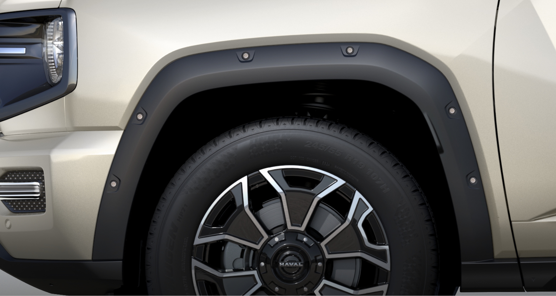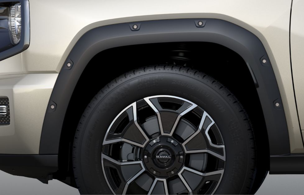 源自“肩甲”元素,宽厚的轮眉,像肩甲包裹住车轮,肌肉感十足,彰显硬派基因