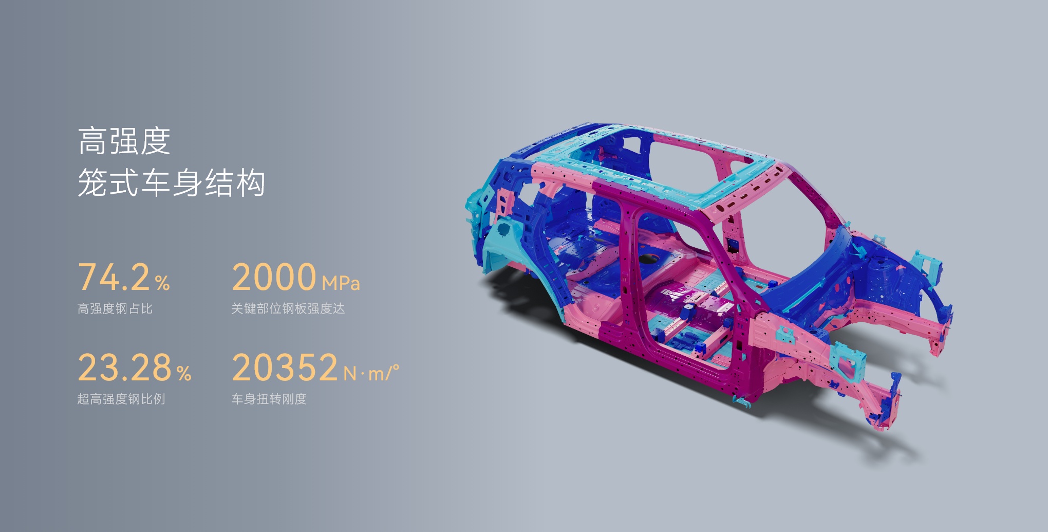 前门+前风窗采用双层夹胶隔音玻璃,配合高隔声双前围系统,有效隔绝胎噪和风噪