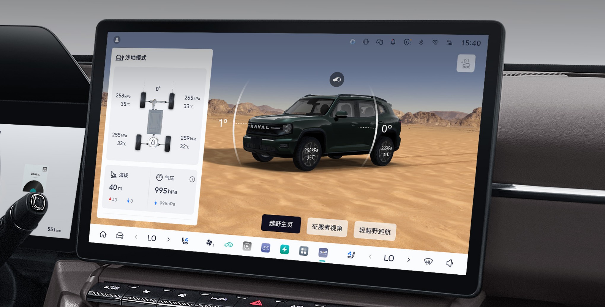 可直观对车辆行驶状态进行监测,前后扭矩信息,海拔、气压、方向、坡度、胎压等信息一目了然